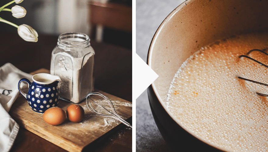 Все ингредиенты для блинов должны быть свежими. Кроме того, яйца и молоко стоит вынуть из холодильника заранее, чтобы они согрелись до комнатной температуры. Тогда тесто будет лучше меситься.