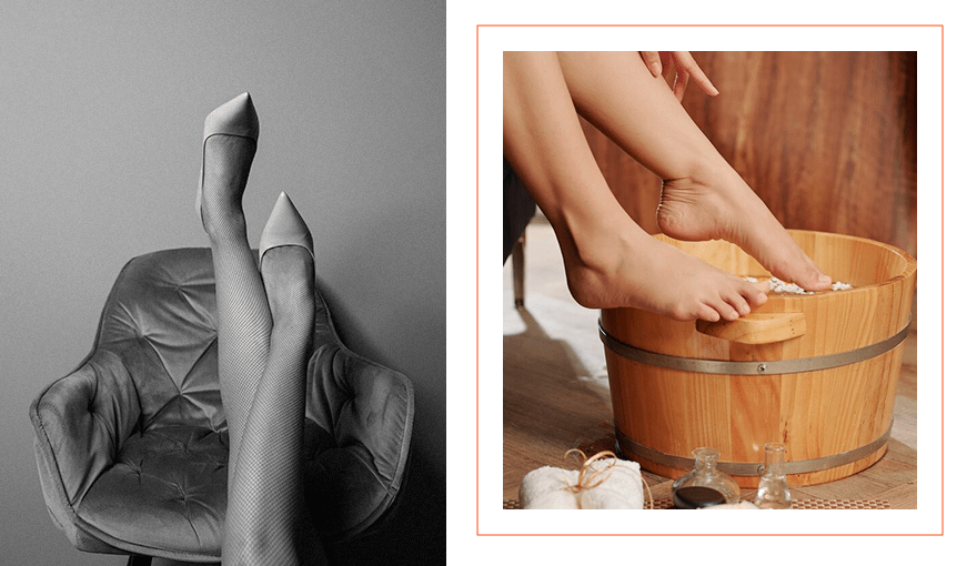 Ванночки для ног также могут помочь тебе расслабиться после целого дня в каблуках. Кроме того, после процедуры твоя кожа станет более нежной, а качество сна улучшится. Чтобы спа-процедура была эффективной, перед тем как окунуть ноги в ванночку, помой их в теплой проточной воде и насухо вытри махровым полотенцем.