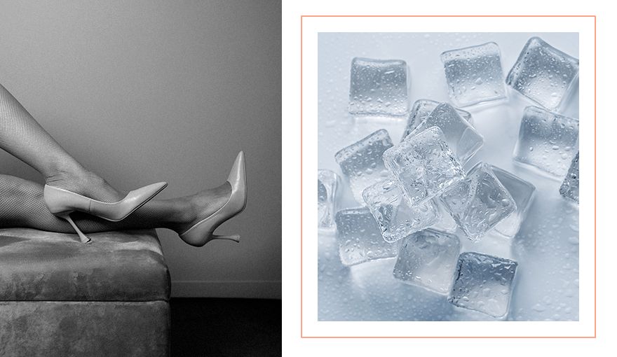 Этот метод тоже поможет тебе избавиться от усталости в ногах и отечности после целого дня на туфлях с высоким каблуком. Используй заранее замороженные кубики льда, чтобы протереть ими стопы и голени. Старайся не задерживаться слишком долго в одной точке.