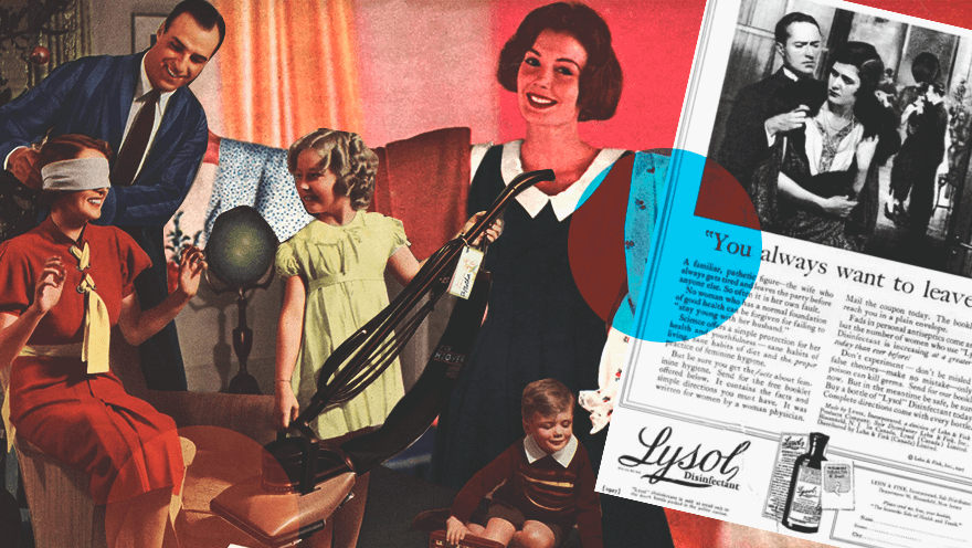 Не нравится быть обслугой с короной на голове — возьми средство для спринцевания. Компания Lysol, известная в наше время как производитель бытовой химии, продавала в 1950-1960-х растворы для женской гигиены.