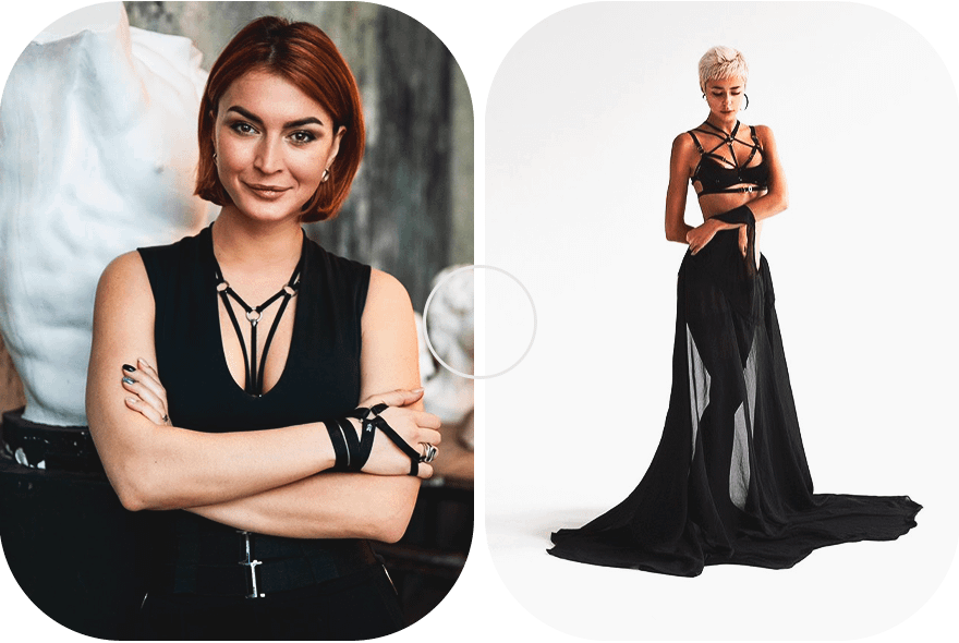 Стрэпы — это не просто эротическое белье, а аксессуар к одежде, который расставляет правильные акценты. Они подходят под самые разные ситуации. То есть мои стрэпы можно надевать на голое тело, и это будет самостоятельный эротический аксессуар. Или, например, под нижнее белье или купальник, добавив к ним новый вызов. Также стрэпы легко использовать и в повседневной жизни, надев их под рубашку, платье, топ. Да, в общем-то, под все что угодно. Строгих правил здесь нет.