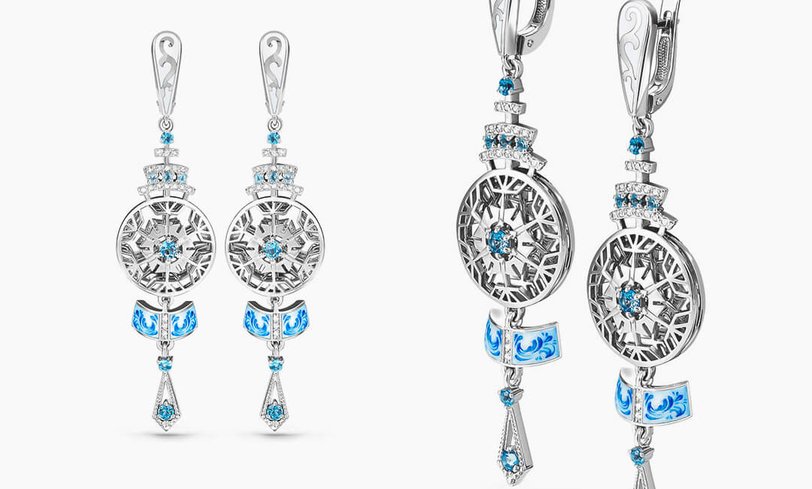 Медальоны. Серьги овальной формы с центральной частью из драгоценного камня. В основе серьги могут быть другие материалы, например горячая эмаль, тоже декорированная камнями.