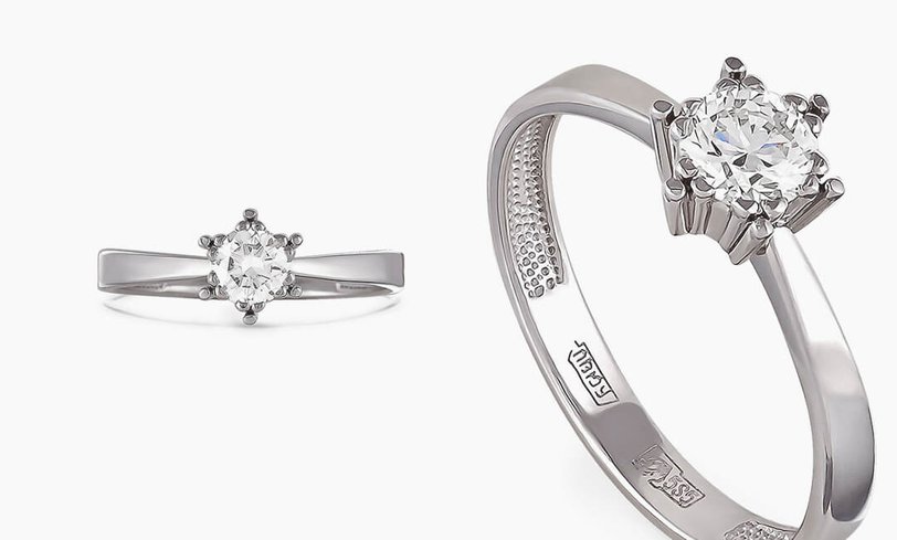 Помолвочное кольцо может быть шикарнее обручального, традиционный вариант – колечко с одним бриллиантом.