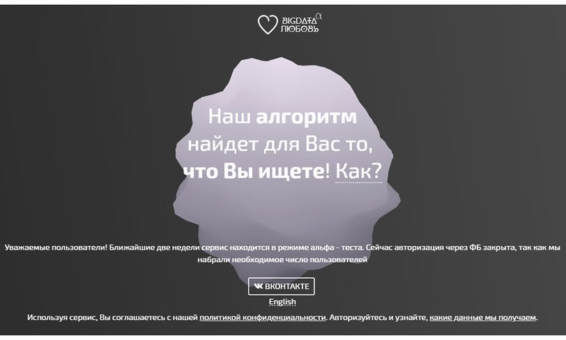 В отличии от существующих дейтинг-сервисов, BigData отличается анализом поведения людей в соцсетях: