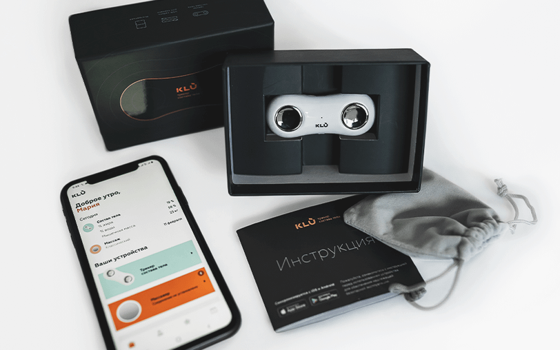 Миниатюрный девайс определит процент жира, мышечной массы, воды в организме, скорости метаболизма и индекса массы тела. Анализ происходит за счет биоимпеданса: поверхность трекера пропускает сквозь тело слабый электрический импульс и измеряет сопротивление различных тканей. На основе полученных данных KLU производит расчет обмена веществ, количества жира, мышечной массы, воды и других важных показателей.