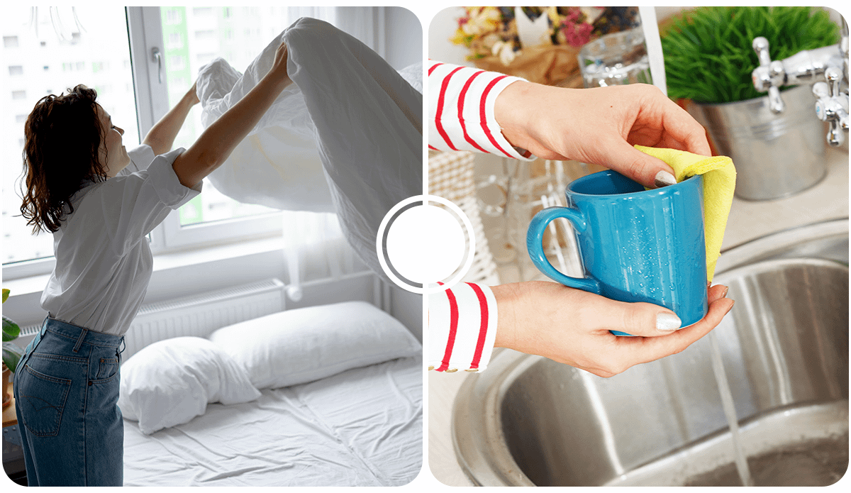Можешь распорядиться свободными минутами иначе и придумать 3 задачи, каждую из которых возможно выполнить за пять минут. Например, этого времени хватит, чтобы помыть все стаканы или заправить кровать. Следующие пять минут складывай в мусорную корзину весь хлам, а оставшееся время удели уходу за цветами: полей их и удали пыль с листьев.