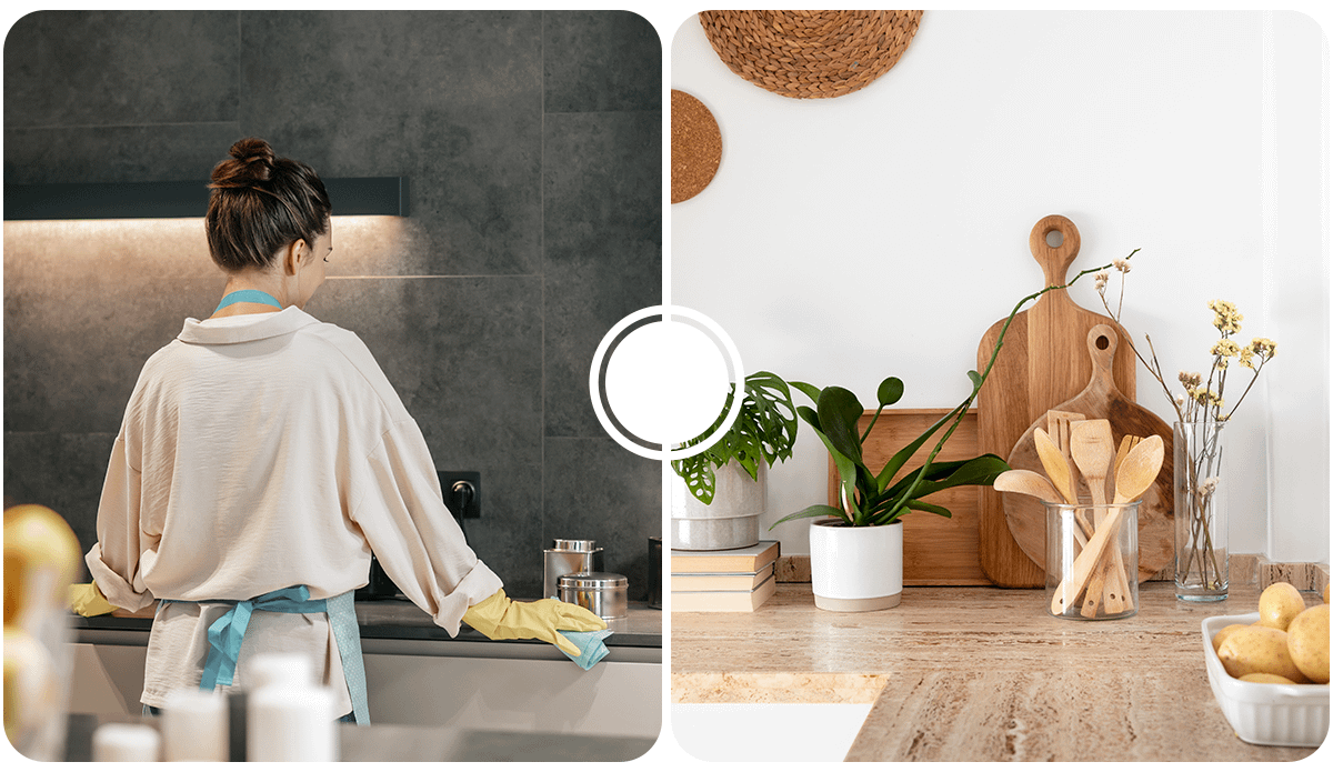 Здорово, если у тебя есть множество разных специй, хорошие ножи и ты любишь создавать сложные блюда. Но это не повод оставлять все приборы и баночки на рабочей поверхности. До тех пор, пока будешь делать так, не сможешь добиться идеальной чистоты на кухне. Каждый день уделяй 15 минут на то, чтобы разложить по местам посуду, столовые приборы, разные баночки и контейнеры. Вытри все поверхности влажной тряпкой и не забудь о плите. Если останется время, проверь, нет ли на полках в холодильнике просроченных продуктов.
