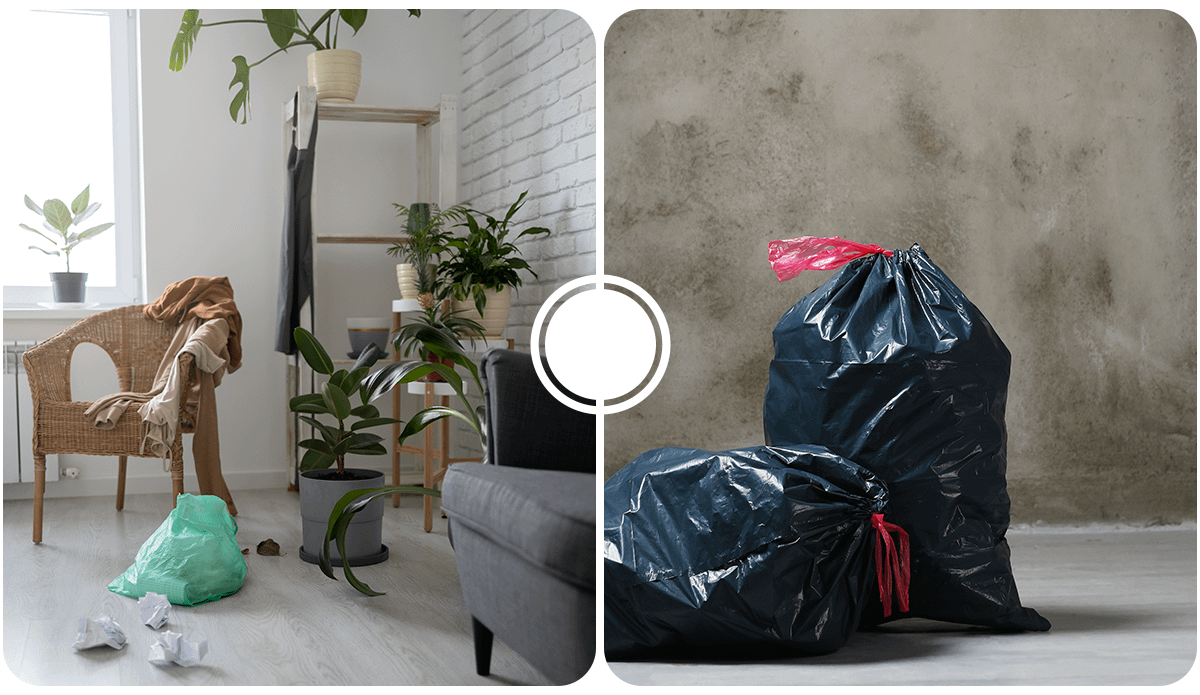 Возьми в руки мусорное ведро или обычный пакет и пройдись по всем комнатам. Убирай весь мусор, который попадается на пути: использованные салфетки, фантики, бирки от новой одежды, волосы с расчески, бутылки от воды. Постарайся максимально очистить все поверхности и одновременно с этим разложи по местам хотя бы часть вещей, которые оказываются перед твоими глазами.