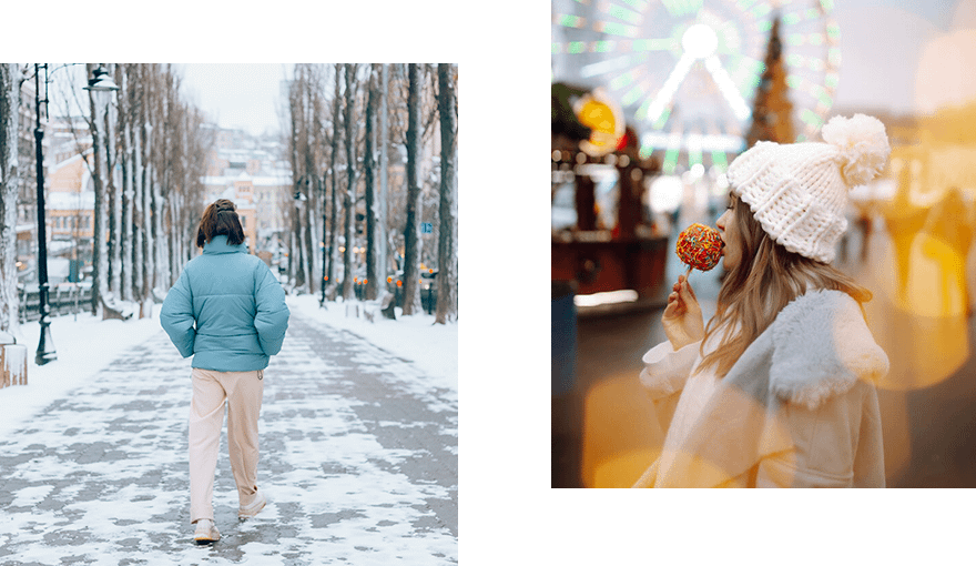 Пешие прогулки — отличный способ зарядиться энергией и потратить калории. Ты сможешь посмотреть на украшенный по случаю праздников город и сделать несколько красивых фотографий. Чтобы прогулка была интереснее, пригласи подругу или захвати с собой наушники и заряженный телефон.
