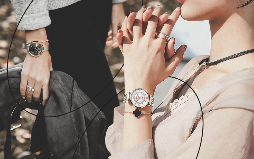 Раньше действовало негласное, но строгое правило: корпус и браслет часов должны быть выполнены в одной цветовой гамме с другими украшениями. Например, если надеть серебряное кольцо, серьги или браслет, то и цвет часов должен быть серебряным. То же самое и с золотом: к желтым украшениям подбирались часы с металлом желтого оттенка, а к розовым — розового.