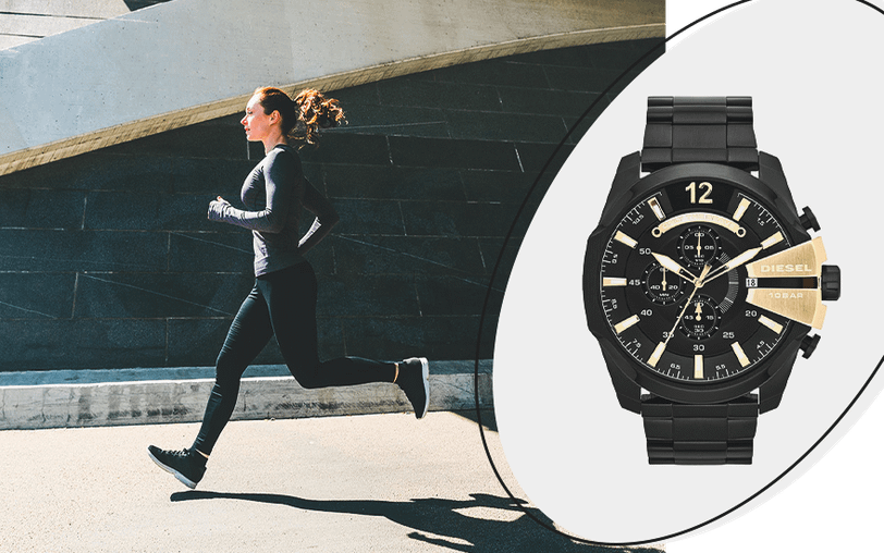 Для занятий спортом выбирай часы с хронографом — своего рода счетчиком, с помощью которого можно зафиксировать время пробежки, велосипедной прогулки или плавания, а также частоту сердечных сокращений. Идеальный пример — стальные часы-хронограф Diesel DZ4338 в черно-золотом исполнении. Имеют водозащиту в 10 атмосфер и браслет с системой блокировки, который точно не расстегнется даже во время интенсивной тренировки;