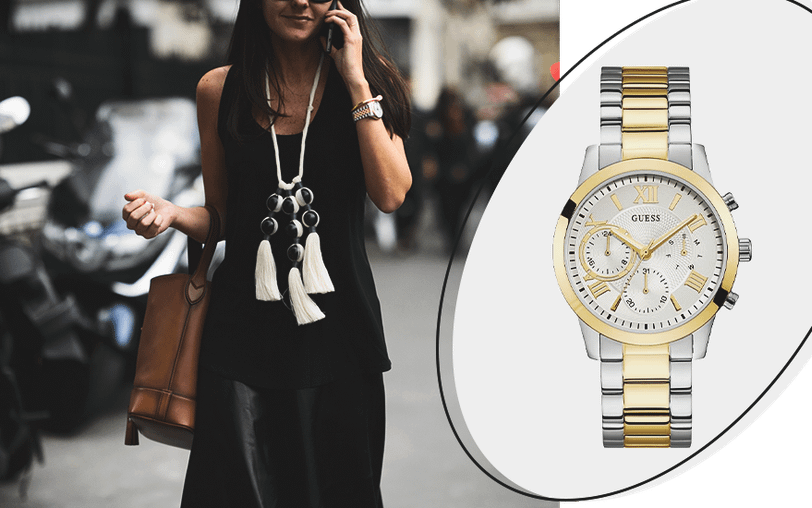 На каждый день — тут уже дело вкуса, но лучше опять же выбирать из классики. Если не знаешь, какую модель приобрести, присмотрись к стальным часам Guess W1070L8, одновременно выполненным в серебре и золоте. Они украсят любой аутфит, будь то базовые джинсы и футболка или платье с пайетками.