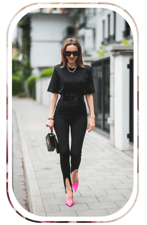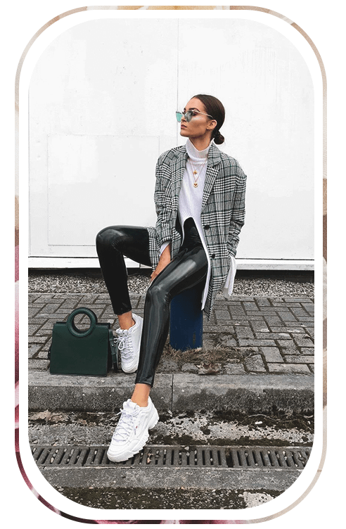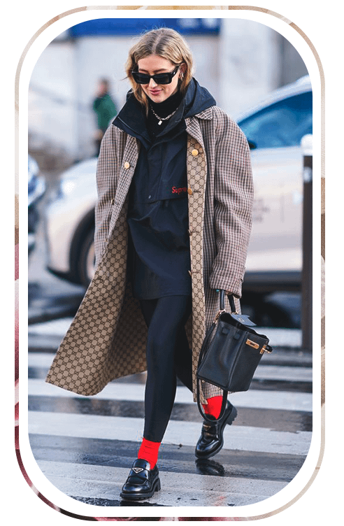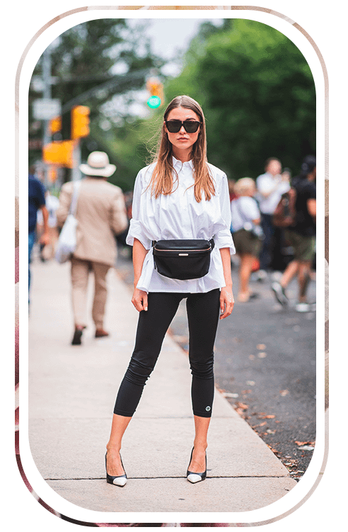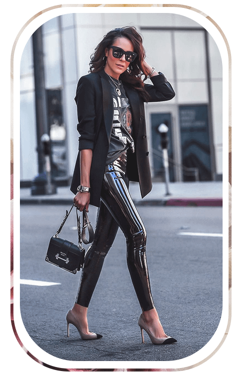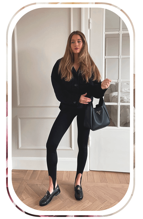 Обувь для образа с легинсами нужно правильно подбирать: визуально она должна подходить под общий стиль твоего наряда, а еще не «резать» ногу — иначе есть шанс визуально укоротить себе рост.