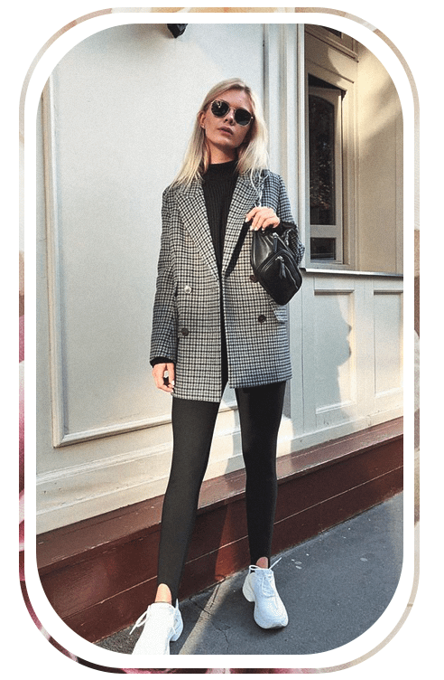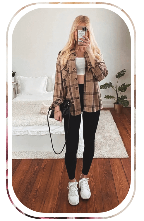 Также с легинсами можно сочетать актуальную рубашку-шакет: здесь ты можешь узнать больше о том, как носить этот предмет гардероба.