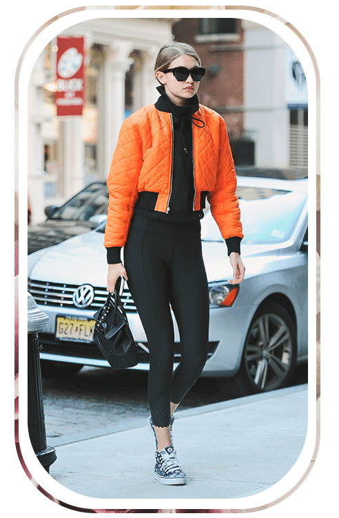 Легинсы с укороченной толстовкой — отличное решение для спортивного образа. Выбирай модели легинсов с высокой посадкой, а толстовку не слишком обтягивающего фасона. Так ты правильно расставишь акценты и сделаешь свой образ стильным. А дополнить его можно кроссовками в тон легинсам или контрастного оттенка.