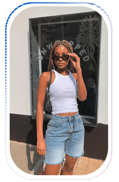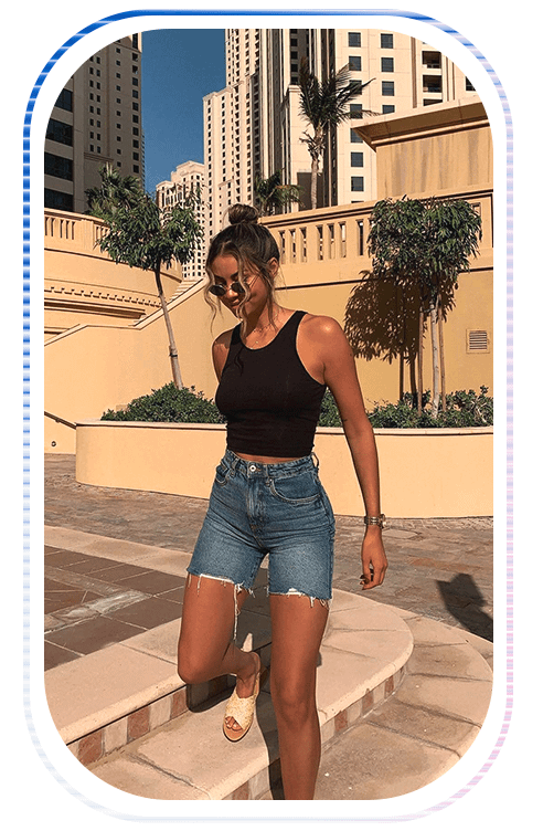 Этим летом особенно актуальны будут джинсовые шорты выше колена с необработанными краями. Выбирай модели с высокой талией, чтобы сделать образ более женственным и подчеркнуть достоинства фигуры. А майка-алкоголичка не только спасет от жары, но и подчеркнет твое умение выглядеть просто, но со вкусом.
