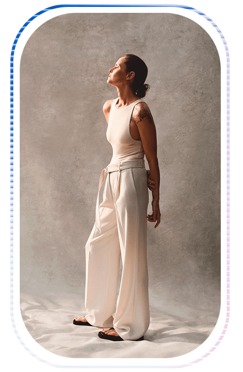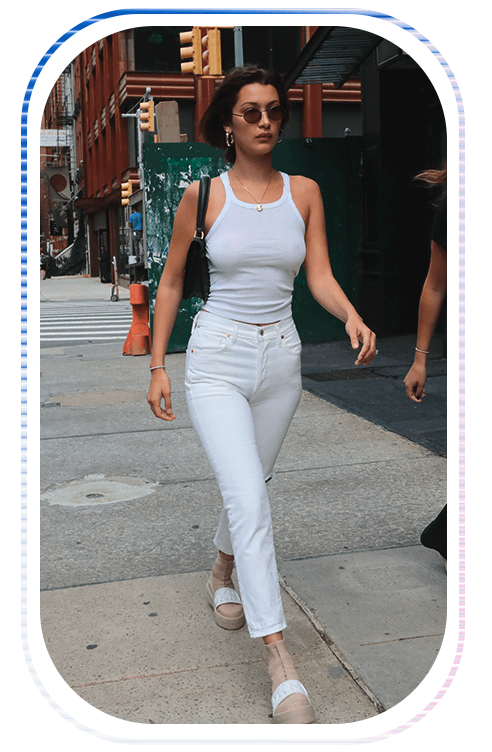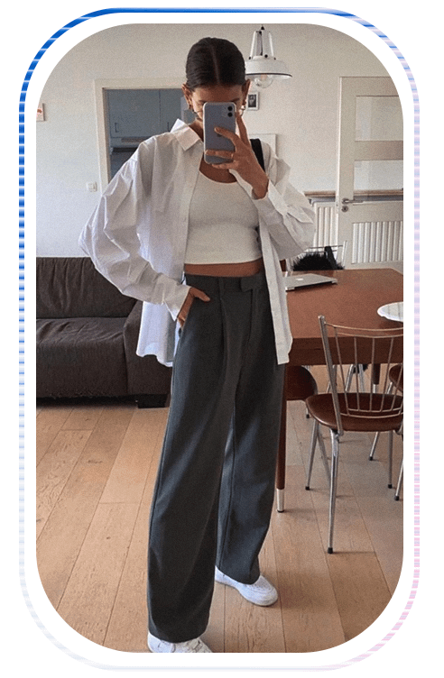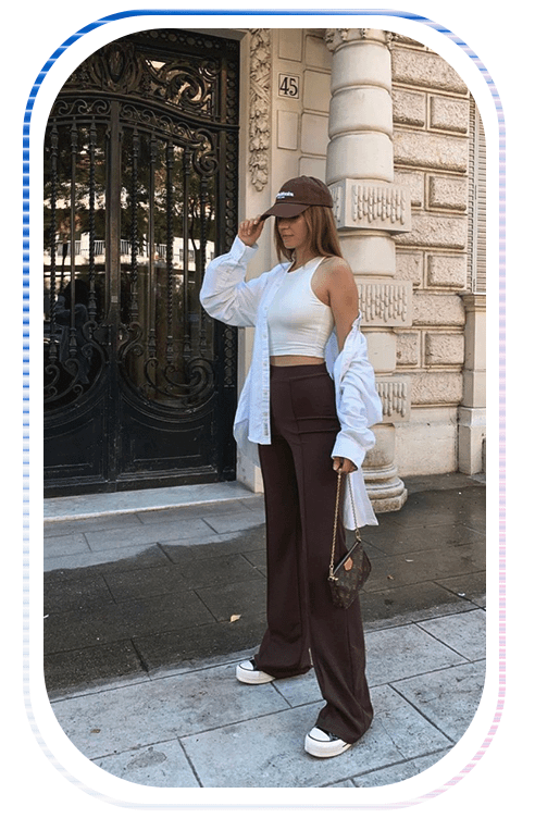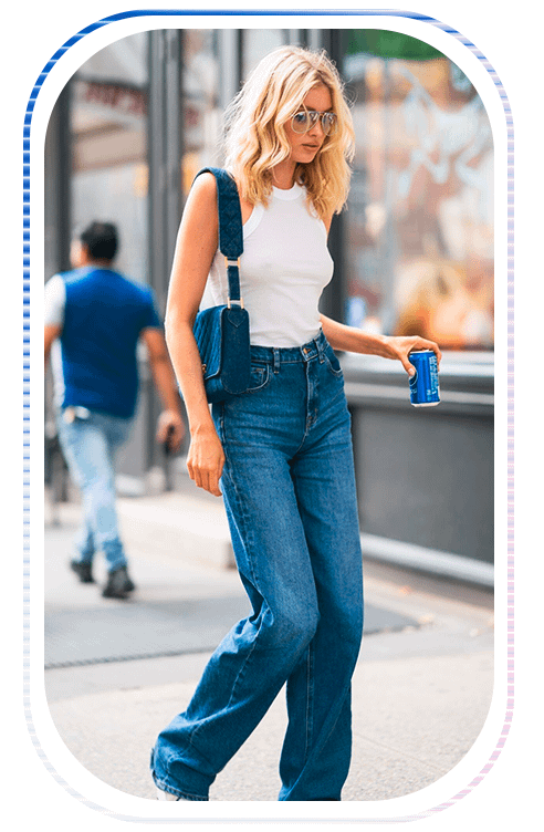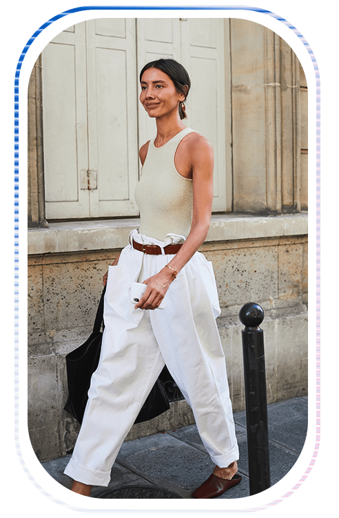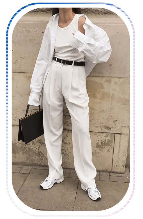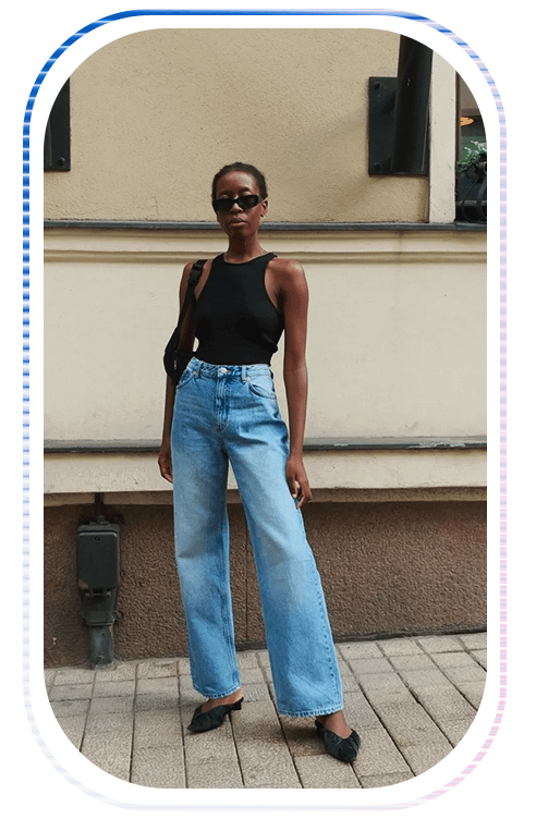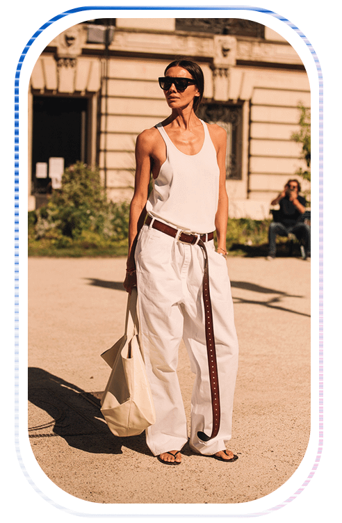 Обрати внимание на актуальные в этом сезоне брюки бэгги. Они идеально сочетаются с майкой-алкоголичкой и позволяют создать расслабленный, но при этом ультрамодный образ, навеянный модой конца 90-х — начала 2000-х. Подробнее об истории бэгги и о том, как грамотно вписать их в повседневный образ, читай здесь.