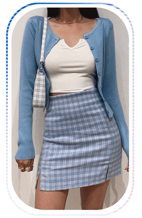 Чтобы создать женственный и милый образ, используя базовые вещи, сочетай майки-алкоголички с укороченным трикотажным жакетом на пуговицах в стиле нулевых. Особенно нежно такой верх выглядит в одном образе с мини-юбкой или джинсами с высокой посадкой.