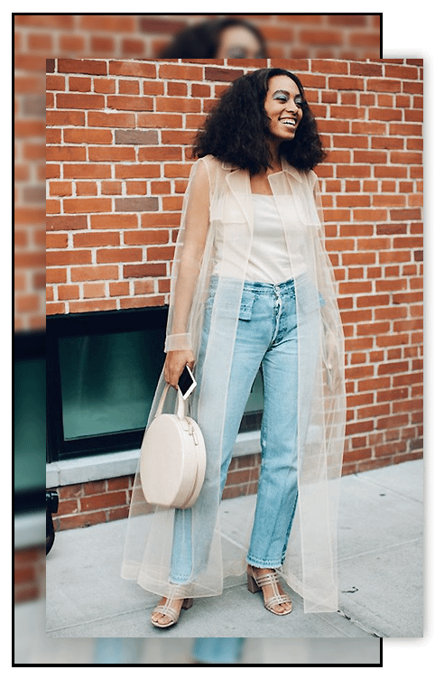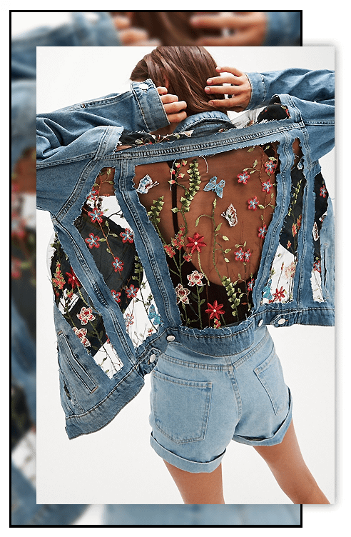 Тем, кто пока не готов составлять полноценные образы с полупрозрачной одеждой, мы рекомендуем присмотреться к более безопасным базовым вещам с прозрачными вставками. Это может быть джинсовая куртка или бомбер с полупрозрачными сетчатыми рукавами или спиной. Или джинсы, украшенные расшитой цветами органзой или фатином.