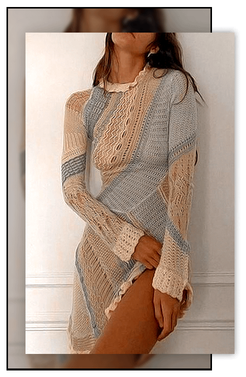 Вязаные полупрозрачные платья с бельем телесного цвета