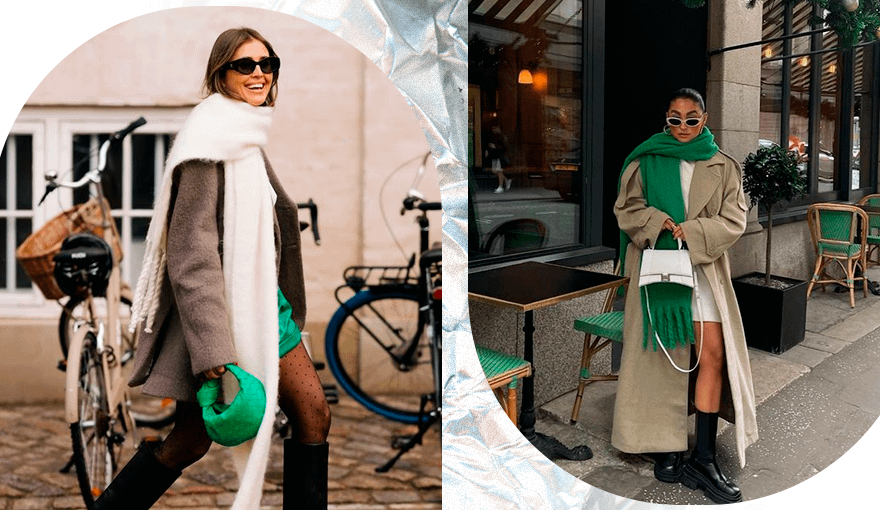 Шарф — это довольно практичный аксессуар, который спасает в холода и может стать акцентной деталью образа. Поэтому, если хочешь осенью носить укороченные платья или юбки, используй удлиненный шарф в качестве главной детали образа.