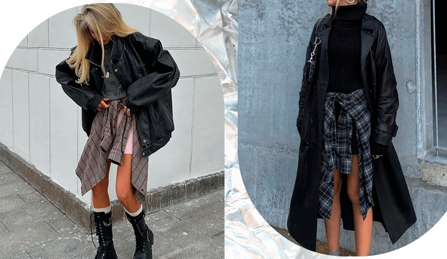 Этот метод также поможет тебе превратить образ с мини-юбкой в подходящий для холодного дня. Идеально, если у тебя есть оверсайз-рубашка с шерстью в составе. Такая акцентная деталь сделает аутфит более стильным и убережет от продувания твою спину.