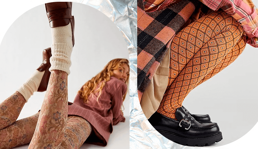 Если твой образ довольно яркий или ты хочешь сделать его таким, используй цветные колготки. Чтобы они выглядели уместно, их оттенок должен гармонировать с цветом обуви или другой деталью в образе.