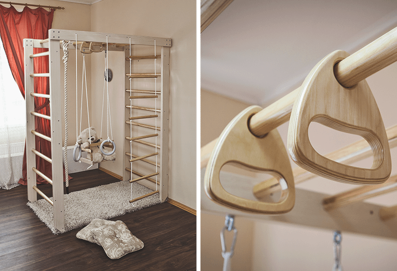 Желательно, чтобы спортивный комплекс был сделан из натуральных материалов, например, из древесины лиственных пород. Она не только крепкая, но и экологичная: не загрязняет воздух парами формальдегида и другими токсичными веществами, как это нередко бывает с более дешевыми материалами.