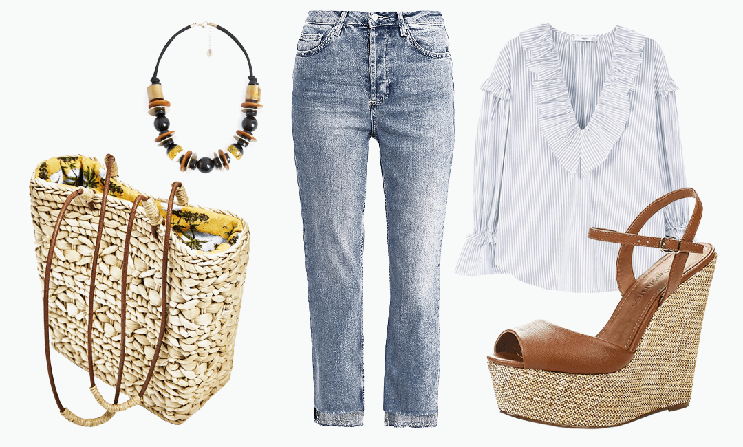 Повседневный стиль Биркин стал легендарным и остается популярным до сих пор. Простые, немного потертые обрезанные джинсы с высокой талией, белая или с принтом рубашка пышного кроя и, конечно же, невероятно стильная в этом году плетеная сумка-корзина. Сама актриса буквально использовала плетеную корзину с элегантной лентой или платком, а вы можете приобрести сумку, выполненную в этом стиле. Также в дополнение к этому образу отлично подойдут босоножки на танкетке или высоком каблуке — еще один любимый элемент гардероба Биркин.