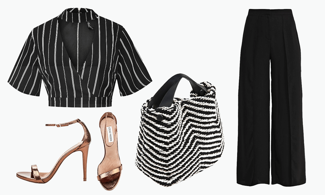 Продолжая тему клеша в гардеробе Биркин, стоит отметить брюки с высокой талией, широкие и расклешенные к низу. Это универсальный вариант для повседневного образа, но если добавить к нему элегантный топ с принтом или кружевом, а в качестве обуви выбрать босоножки на каблуке, то можно получить вечерний образ. Сумка, конечно же, плетеная — если не корзина, то просто текстильная, нейтральных оттенков.