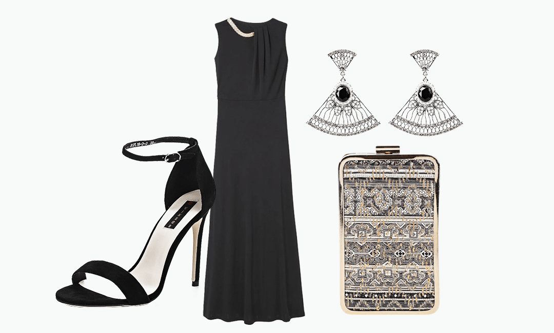 Без вечернего платья не должен обходиться ни один гардероб. Такой элемент одежды вы будете надевать редко, да и в большинстве своем он недостаточно удобен, но несмотря на это, приобрести хотя бы одно элегантное вечернее платье из нежного материала просто необходимо. Эмма Уотсон очень часто появляется на ковровых дорожках и прочих вечерних мероприятиях, поэтому ее платья пестрят разнообразием. Актриса не боится ярких цветов и нестандартных фасонов. Но если вы не знаете, какое именно платье подойдет вам так же хорошо, как Уотсон, помните, что черный цвет никогда не подведет. Для данного образа мы выбрали атласное черное платье-макси с позолоченной деталью, самые обыкновенные босоножки на тонкой шпильке и оригинальный клатч, чтобы добавить изысканности еще и в аксессуары.