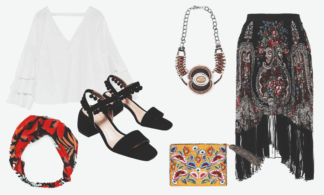 Многослойность — еще одна отличительная черта этнического гардероба Фриды Кало, которую можно легко повторить и сегодня, причем совершенно не обязательно укутываться в платки и шарфы. Достаточно выбрать кардиган в халатном стиле с цветочным принтом и сочетать его с нежными оттенками серого, персикового и легкими, приятными на ощупь тканями вроде атласа, которые хорошо подойдут для жаркой погоды. Не забывай про аксессуары: бусы, браслеты, серьги, ободки — всё это поможет добавить объема, а также привнесет в твой гардероб немного этнического шарма.