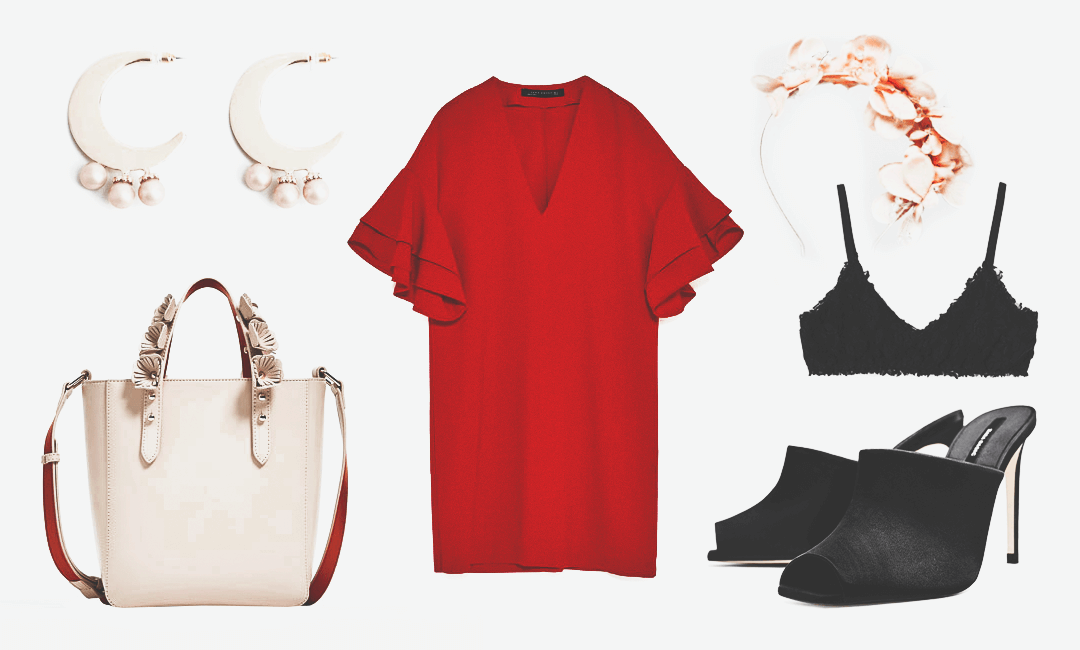 Красный — коронный цвет не одной известной иконы моды, и Фриду любовь к кровавому маку также не обошла. Смотря на фото Фриды, можно увидеть сочетание фуксии, малинового и красного в платьях и блузах с рюшами, которые добавляют объема и нежности ее роковому образу. Для вечернего или повседневного наряда можно выбрать яркое-красное платье-мини с вырезом и объемными рукавами. И, конечно же, финальный аккорд — цветы в качестве головного убора. С комфортной сумкой-шоппером такой наряд можно надевать не только на вечер, но и на менее торжественное мероприятие.