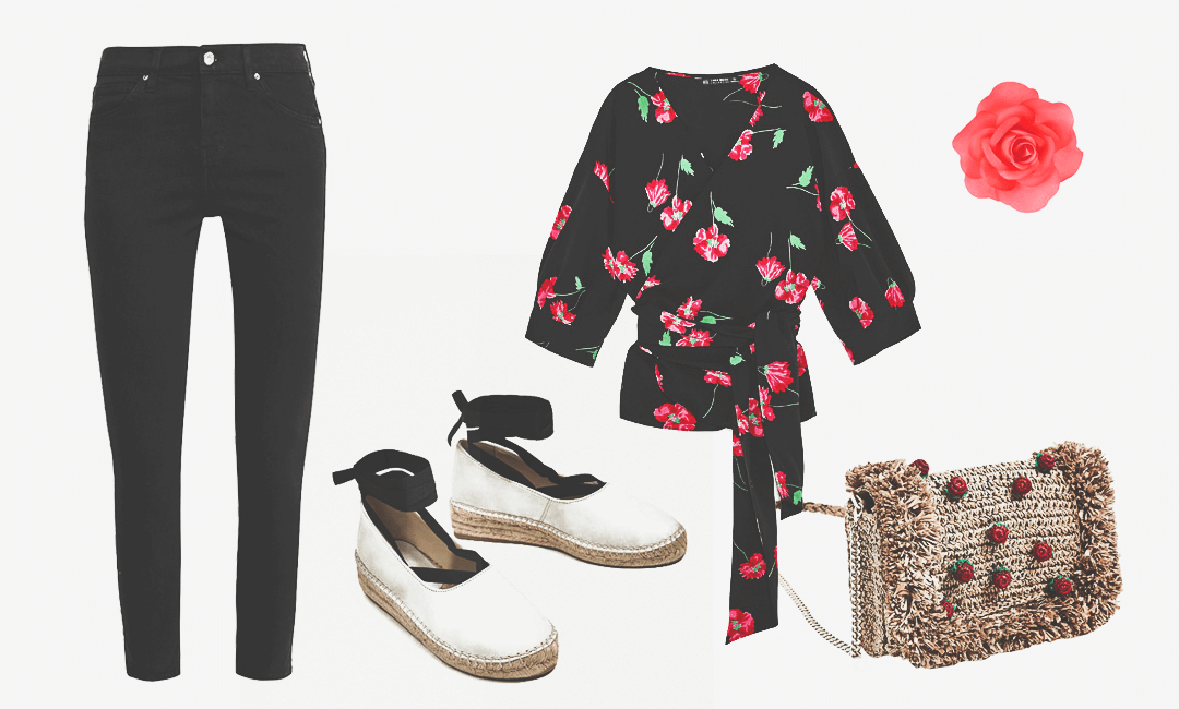 Блузка Zara, 2 599 р. Джинсы Topshop, 4 040 р.