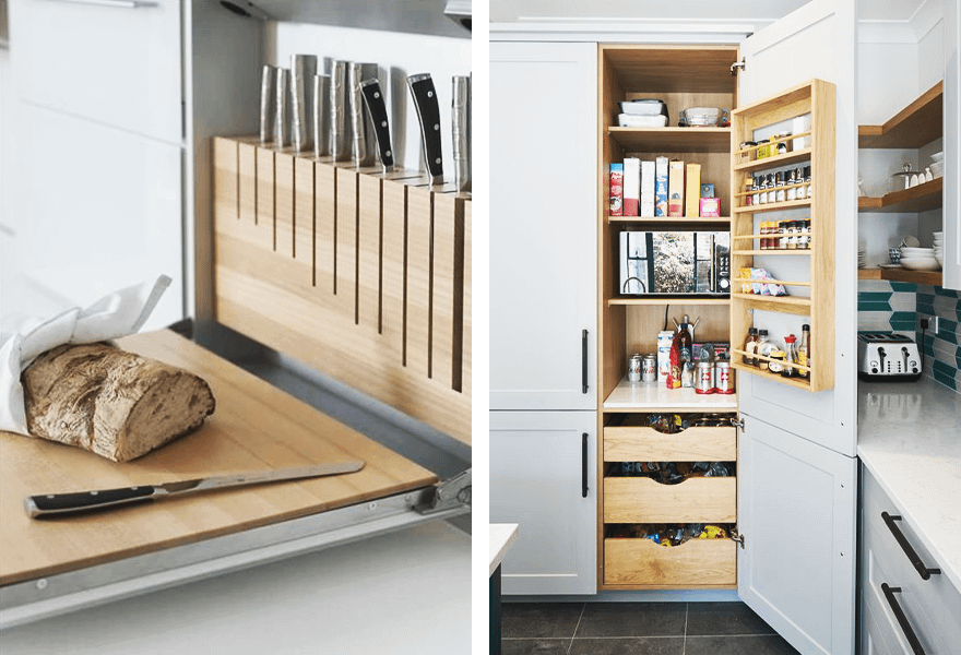 Контейнеры, эстетичные баночки, плетеные корзинки с крышкой, хлебницы и шкафы — все это закрытый тип хранения. Он поможет навести порядок на кухне, избавит комнату от визуального шума и пыли и сделает ее безопасной для детей — ножи, спички или стеклянные банки не будут лишний раз привлекать их внимание.