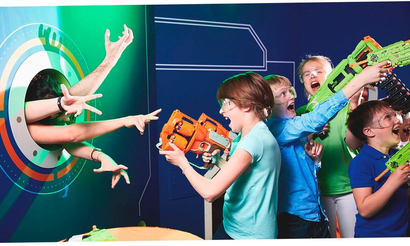 BlasterTag (5+) — площадка для игры с бластерами Нёрф — легендарными игрушечными бластерами с поролоновыми стрелами.