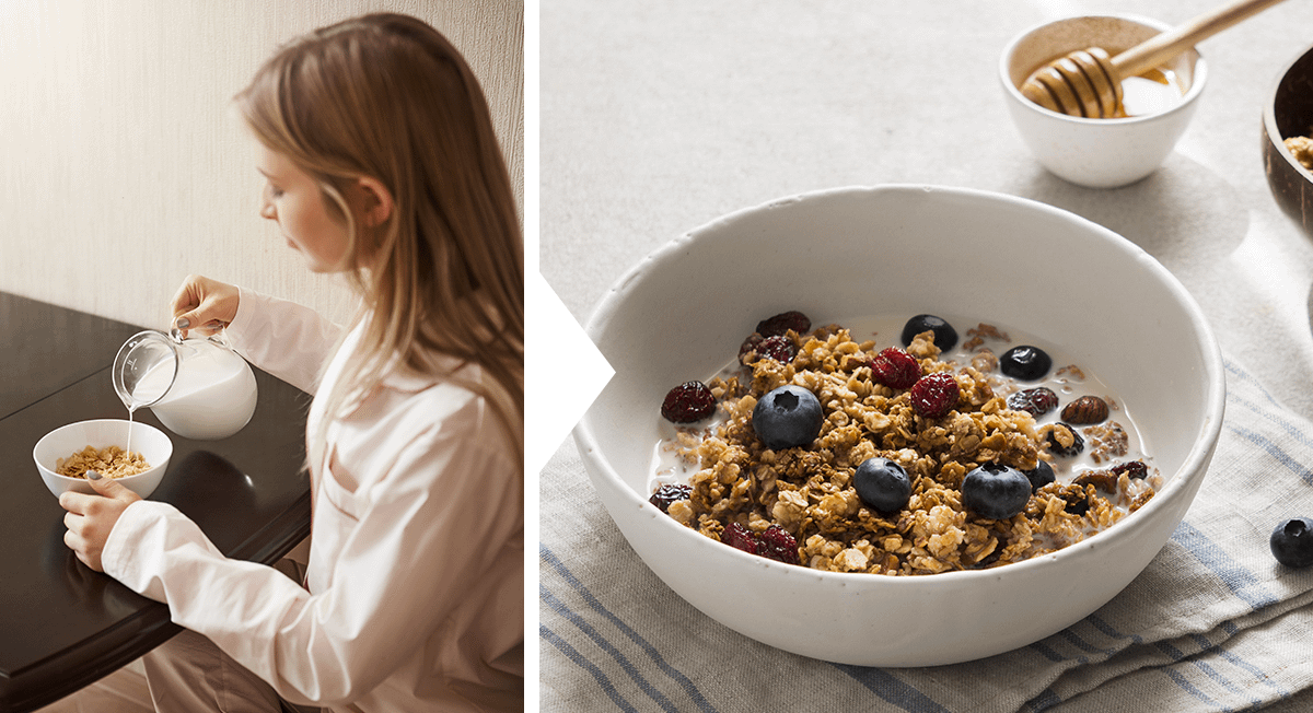 Когда сокращаешь потребление углеводов, важно добавить в рацион больше продуктов, богатых белком. Он насыщает и помогает дольше чувствовать себя сытой, а значит, тянуться за вредными закусками или раздумывать, чем бы перекусить на бегу, ты будешь гораздо реже.