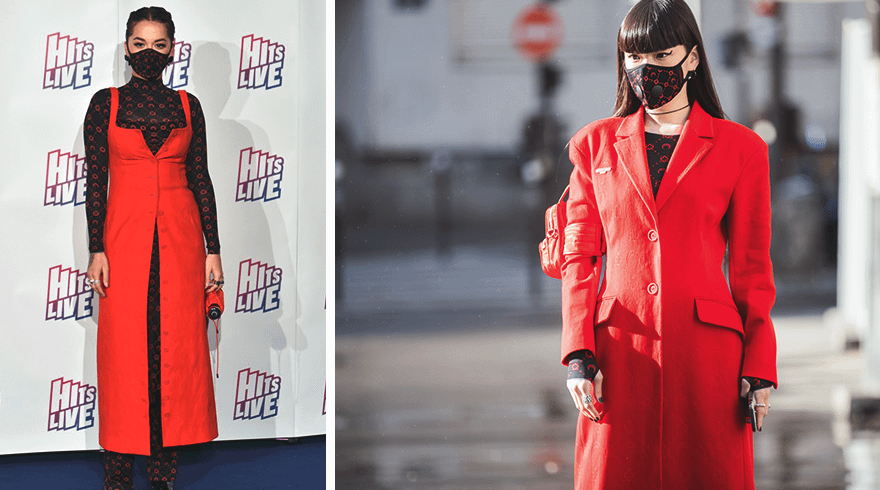 На парижской Неделе моды настроения были уже весьма карантинные: людей в масках среди стритстайлеров и гостей мероприятия значительно прибавилось. В СМИ широко разошлось фото модели Кодзуэ Акимото в маске Marine Serre, платье такой же черно-красной расцветки с принтом, алом пальто и с микросумкой. В этом же наряде уже видели Риту Ору, только вместо пальто она выбрала красный сарафан поверх того же платья в логотипах. В таком образе маска точно не будет выглядеть инородно.