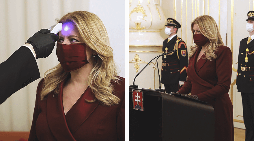 Вполне понятное желание оставаться красивой даже на работе и в условиях пандемии сделало героиней новостей президента Словакии Зузану Чапутову. На присягу к членам нового правительства страны она пришла в лаконичном платье цвета маджента, маске в тон и темных перчатках. Позже вечером Чапутова появилась в платье винного цвета и безукоризненно подобранной к нему маске. В телеграм-канале Good morning, Karl! выходы Зузаны Чапутовой назвали «новым уровнем коронавирусной моды».