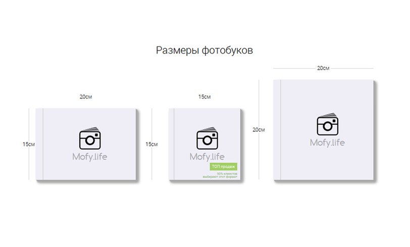 На Mofy.life есть фотокниги разных форматов: альбомный 15х20 сантиметров, стандартный 20х20, большой 30х30 для свадебных фотографий. Из миниатюрного формата 15х15 удобно сделать минибук с вашей свадьбой для родителей.