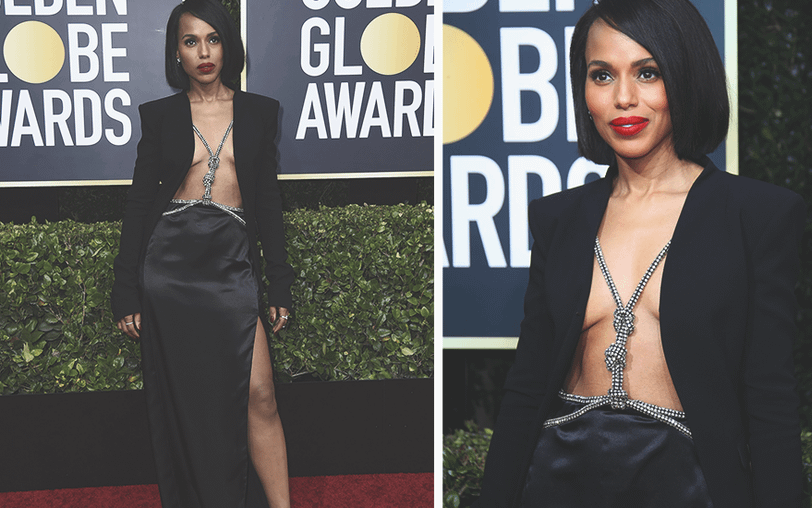 Этот год также начался с ярких образов с портупеями или их элементами. Верхняя часть платья Кэрри Вашингтон напоминала очень дорогую сбрую.