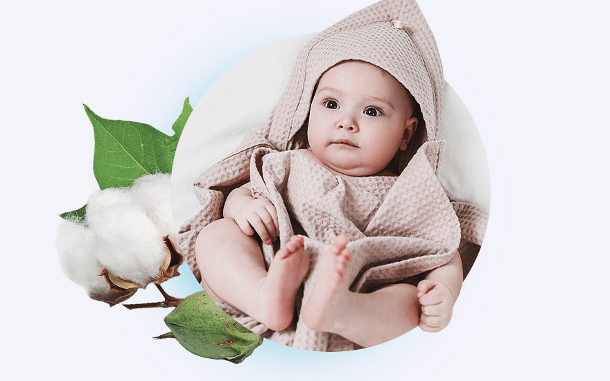 Убедись, что детское полотенце хорошо впитывает влагу, чтобы малыш не простыл, и не травмирует нежную кожу. Отлично подойдет вафельное полотенце с капюшоном из мягкого органического хлопка. Сохнет оно тоже очень быстро.