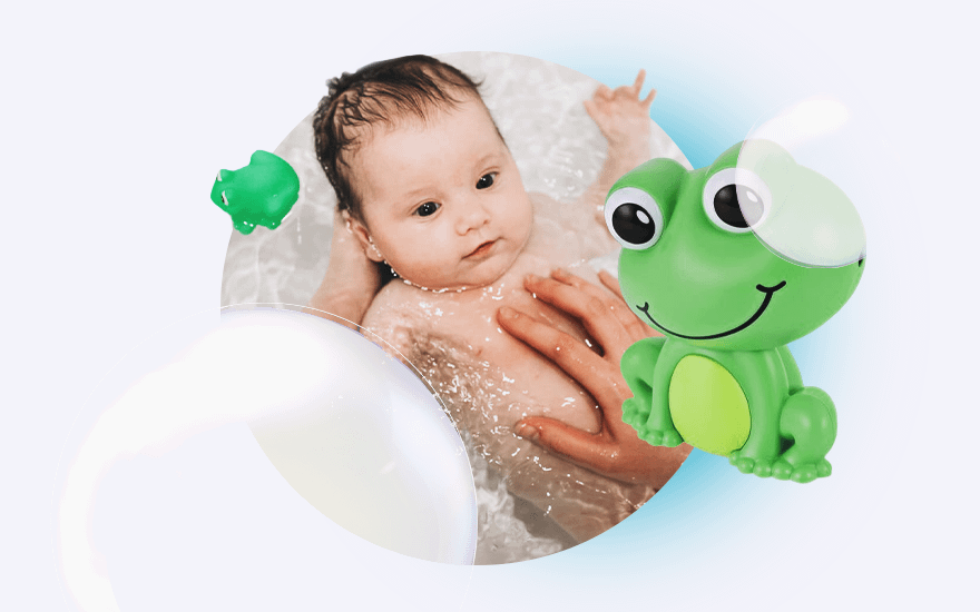Когда малыш становится старше, водные процедуры превращаются в увлекательную игру. Но брать в ванну любимые игрушки может быть негигиенично и небезопасно. Выбирай для этого легкие изделия из пластика или резины, которые не будут тонуть и не травмируют ребенка.
