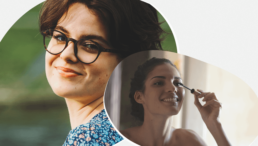 Вполне понятная рекомендация, которой, однако, следуют не все. С удлиняющей тушью твои ресницы наверняка будут упираться в стекла очков. Хочешь подчеркнуть их – используй щипцы для завивки, а затем прокрась только корни ресниц.