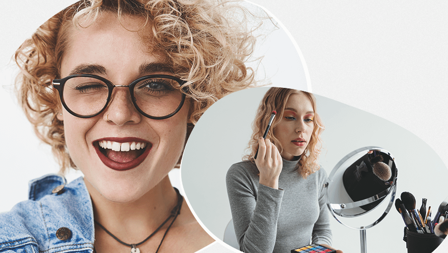 Это касается вообще всех средств, которые ты будешь использовать в макияже. Помни, что очки могут легко стереть или размазать косметику либо оставить на ней отпечатки. Перед тем как наносить тени, обязательно используй базу, которая закрепит их. ВВ-крем, консилер или тональная основа тоже должны быть стойкими, в противном случае макияж доставит уйму неудобств. Также не забудь дождаться, когда макияж окончательно высохнет, прежде чем надевать очки.