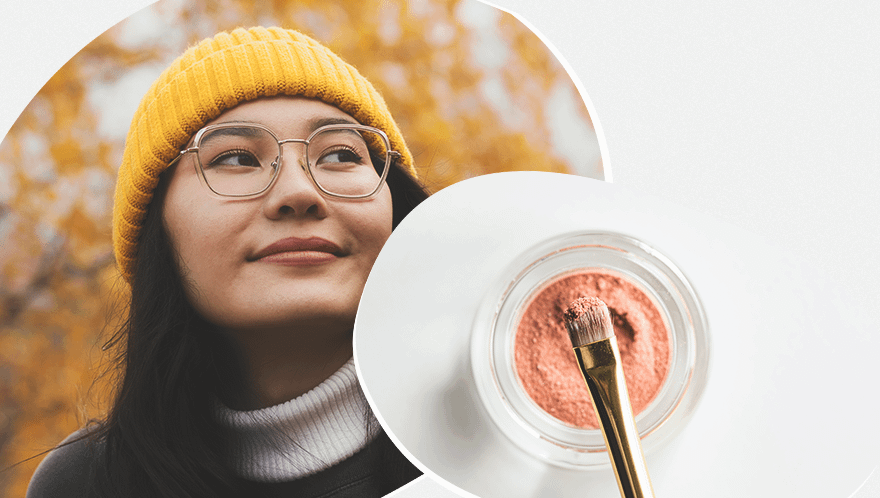 Если все же носишь очки для коррекции зрения, а не с простыми стеклами, многое будет зависеть от типа линз. Очки для близорукости визуально уменьшают глаза. Чтобы нивелировать этот эффект, используй светлые тени. Они могут быть и яркими, если это уместно. Главное, избегать темных теней и подводки на нижнем веке. Напротив, можешь подвести его светлым карандашом, чтобы визуально увеличить глаза.