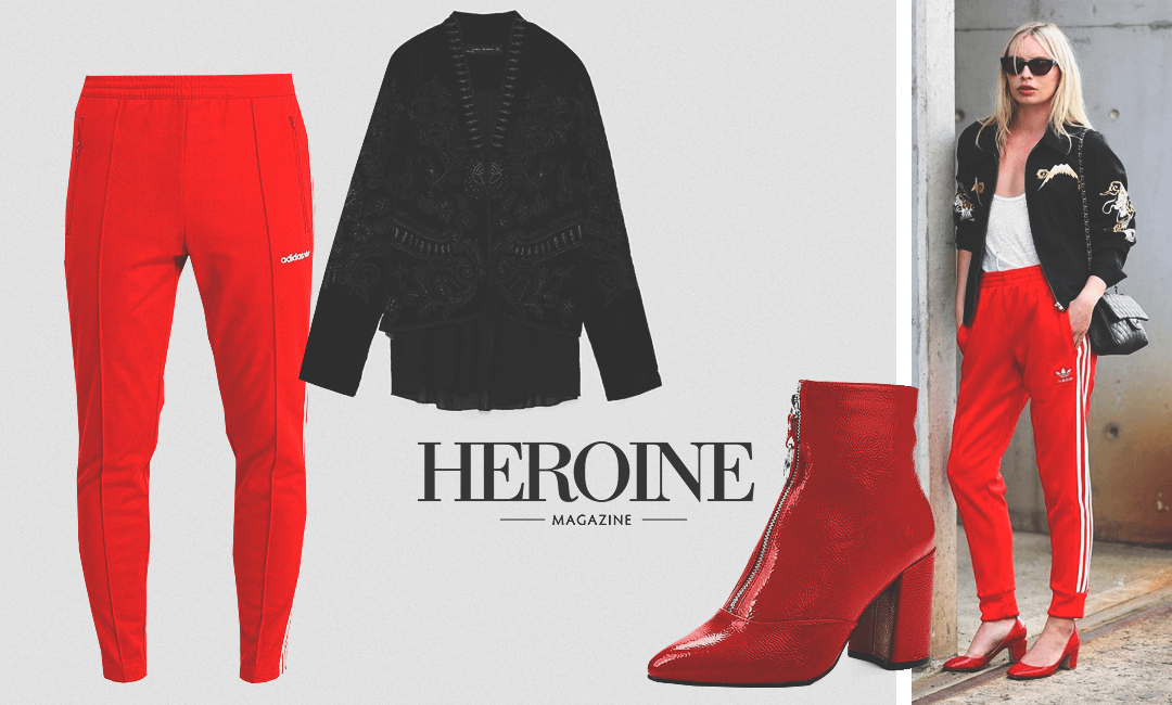 Образ, который покорил мое сердце, – красные Adidas с бомбером и туфлями из лаковой кожи. Очень просто и со вкусом. Но так как у нас ноябрь, на минуточку, а для некоторых это уже значит мороз -100500, пришлось приспосабливаться. Вот тебе все те же Адидасы. Только с бархатным жакетом и лакированными ботильонами. Не знаю, как ты, а я уже пошла отбирать спортивные штаны у бойфренда (щучу, у меня нет бойфренда).