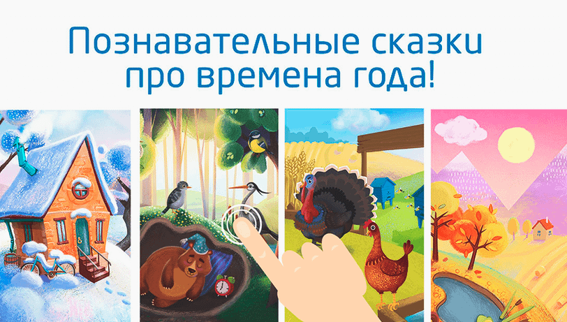 Приложение WhyWhy ориентировано на детей возрастом от трех до пяти лет и представляет из себя небольшой сборник интерактивных сказок про времена года. Объем у них небольшой — всего 12 страниц, — а упор сделан на игры и анимацию, завязанные на интересном сюжете.