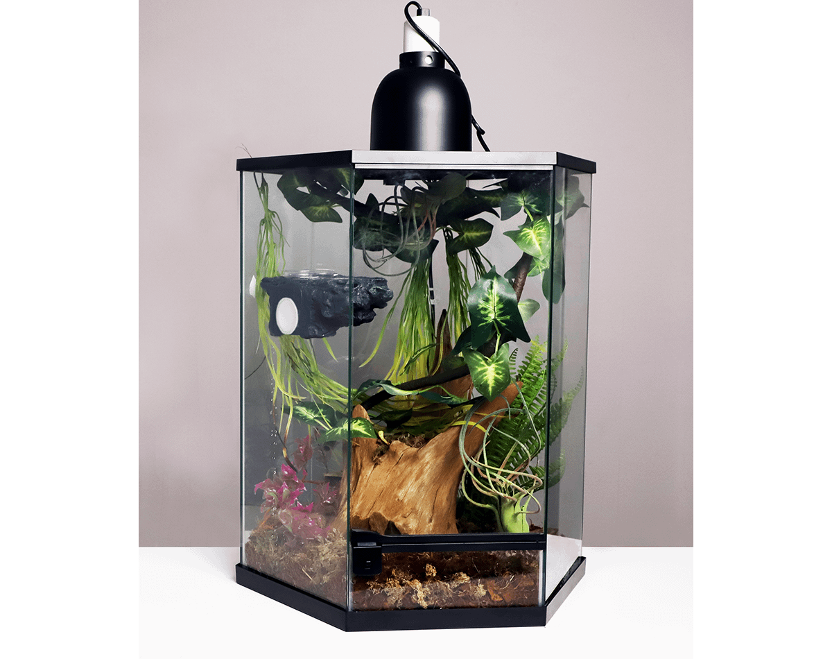 Чтобы питомец чувствовал себя комфортно и без опаски проявлял свой характер, достаточно грамотно обустроить террариум или выбрать стартовый комплект с готовым наполнением — к примеру, Tropic Hexagon. Тебе понадобятся: