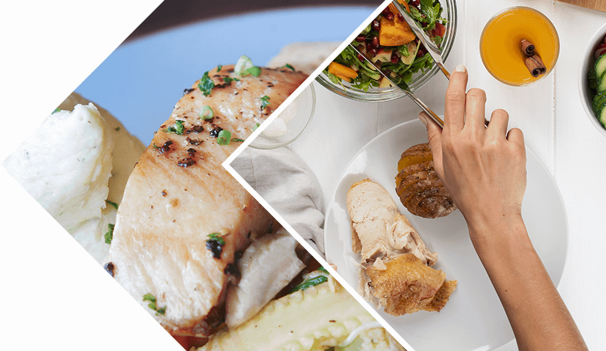 Идеально сочетаются между собой и отвечают этим требованиям запеченный лосось, стручковая фасоль и спаржа либо куриное филе с тушеной капустой и свежими томатами.